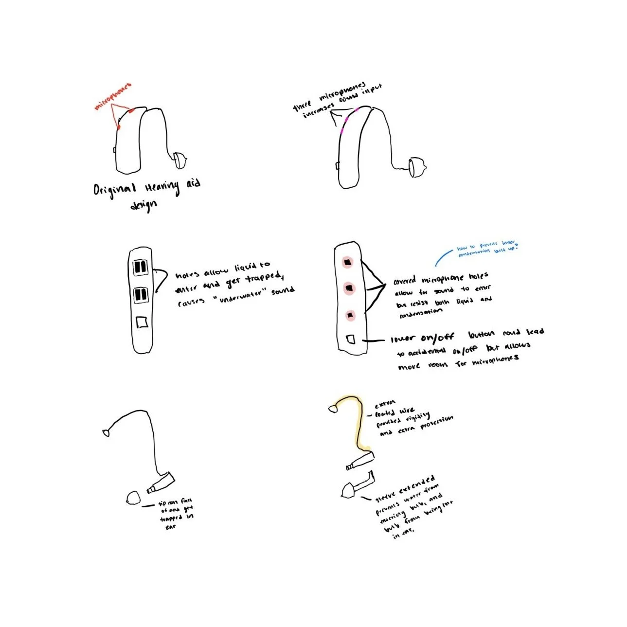 Noticing a gap in the accessibility for those who participate in high level athletics with hearing loss, I wanted to see how we could innovate the current hearing aid models for a more waterproof and physically stronger version.